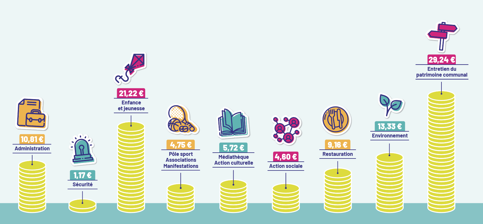 Que finance la ville avec 100 euros (hors personnel) ?