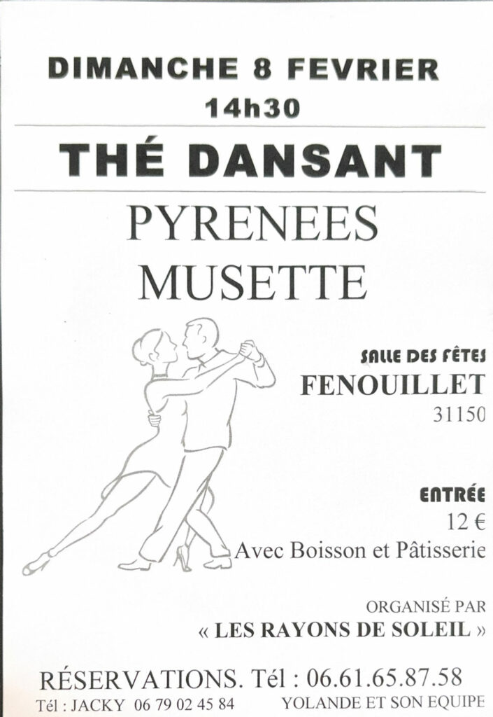 L’association Les rayons de soleil propose un thé dansant avec Pyrénées Musette dimanche 8 février à 14h30 à la salle des fêtes de Fenouillet.