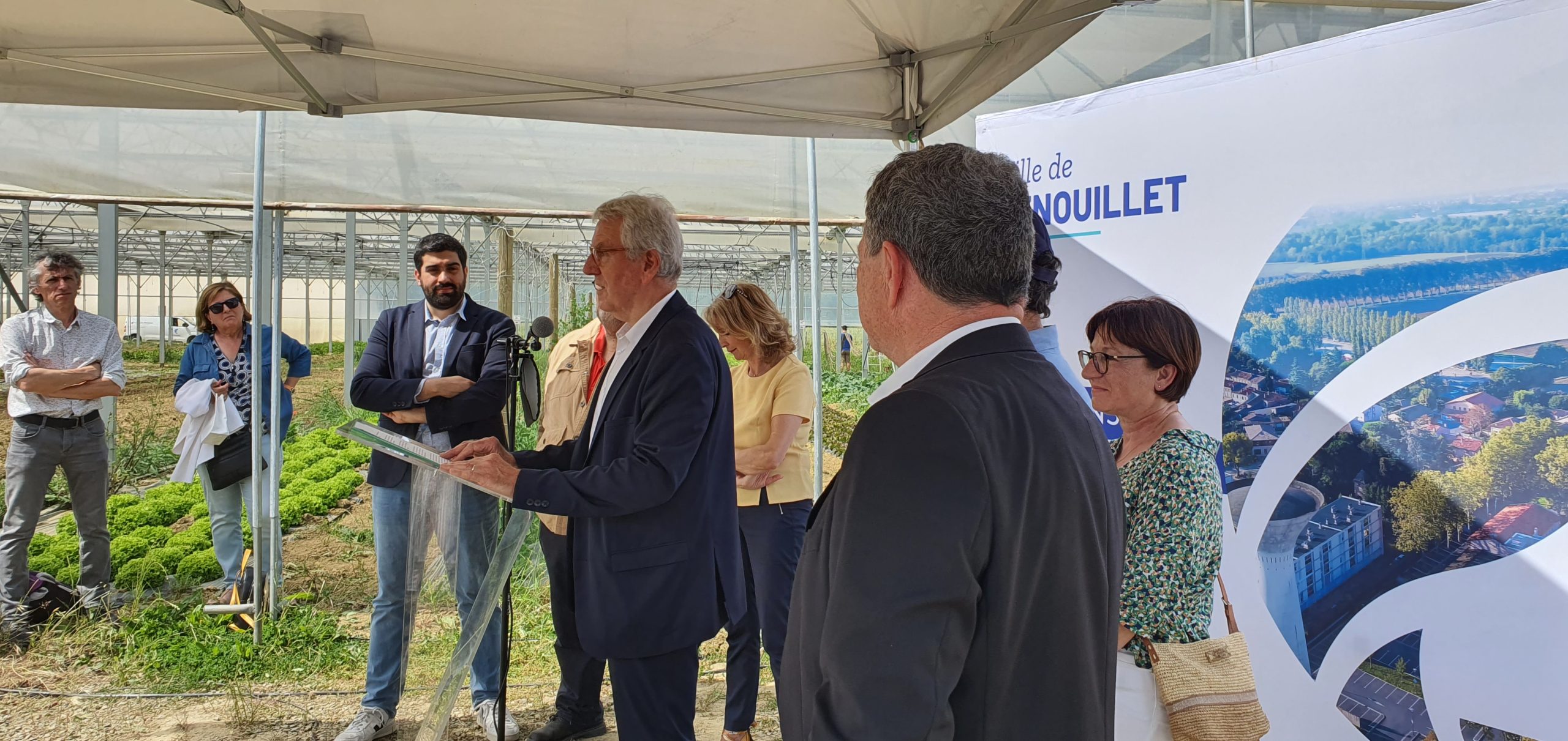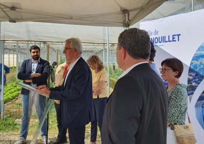 L’inauguration officielle des Jardins du Ricotier s’est également tenue en fin de matinée en présence de Thierry Duhamel Maire de Fenouillet, Geneviève Roques, Conseillère municipale en charge des serres, Guillaume De Almeida Chavès, Conseiller régional représentant Carole Delga Présidente de la Région Occitanie, Sandrine Floureusses, Vice-présidente du Conseil départemental représentant Georges Méric Président de la Haute-Garonne, Bernard Bagnéris Vice-président du conseil départemental chargé de l’agriculture, Jean-Jacques Bolzan, Conseiller métropolitain représentant Jean-Luc Moudenc, président de Toulouse Métropole et Laurent Durrieu, Co-directeur du groupement Cocagne Haute-Garonne.