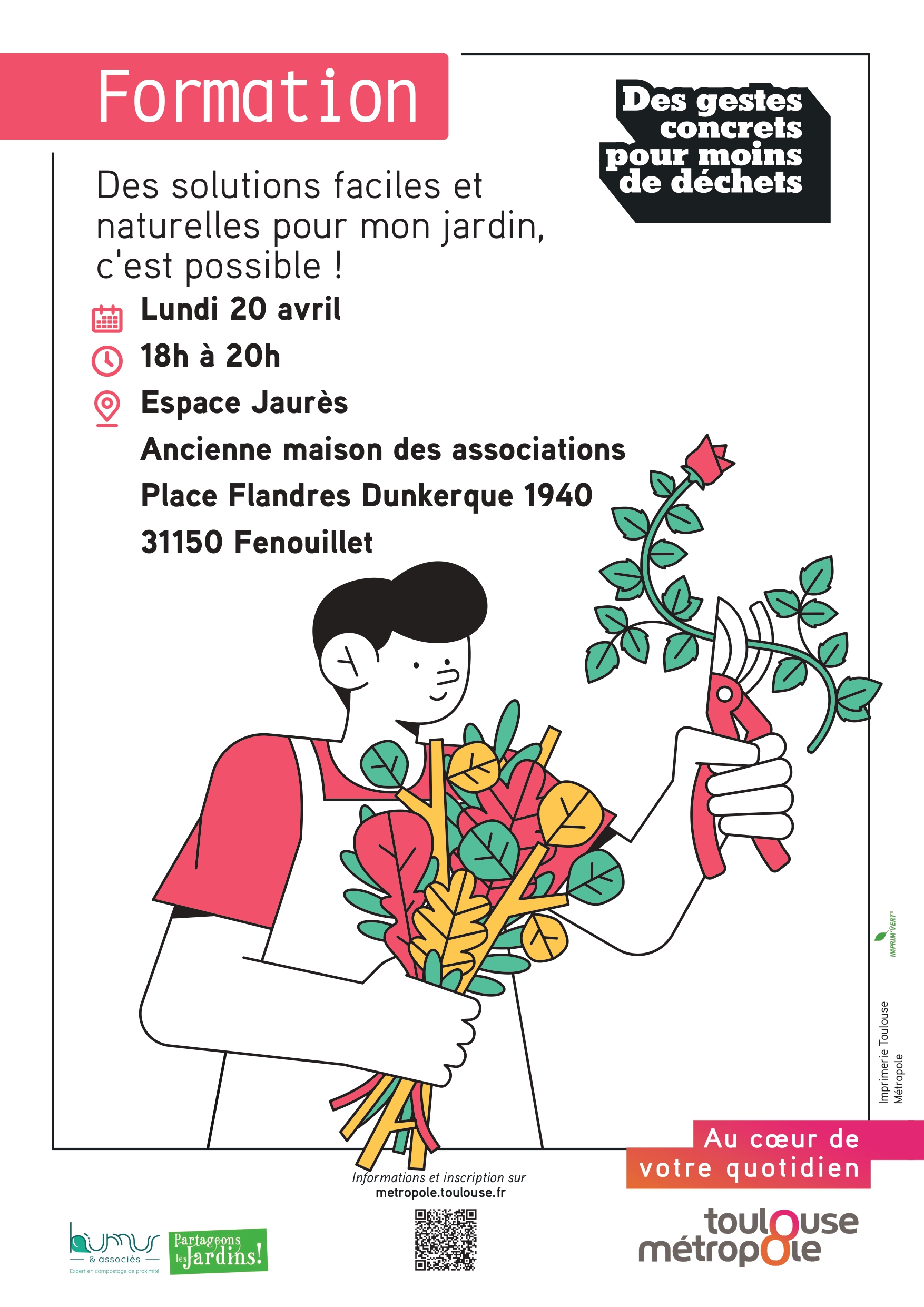 La formation « Des solutions faciles et naturelles pour mon jardin, c’est possible !  » est proposée à l’espace Jaurès de Fenouillet le lundi 20 avril de 18h00 à 20h00, sur inscription.