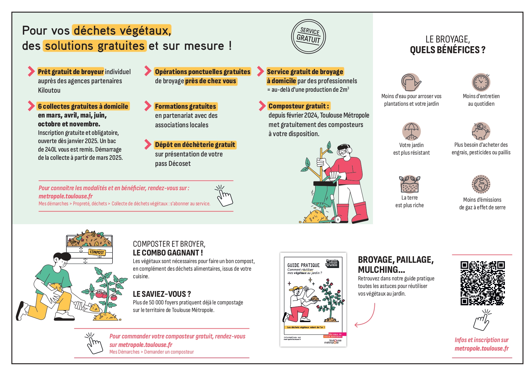Pour harmoniser les collectes des déchets végétaux et pour répondre à la réglementation (la loi Anti Gaspillage pour une Economie Circulaire et le Plan Régional de Prévention de Gestion des Déchets), Toulouse Métropole fait évoluer ses services !