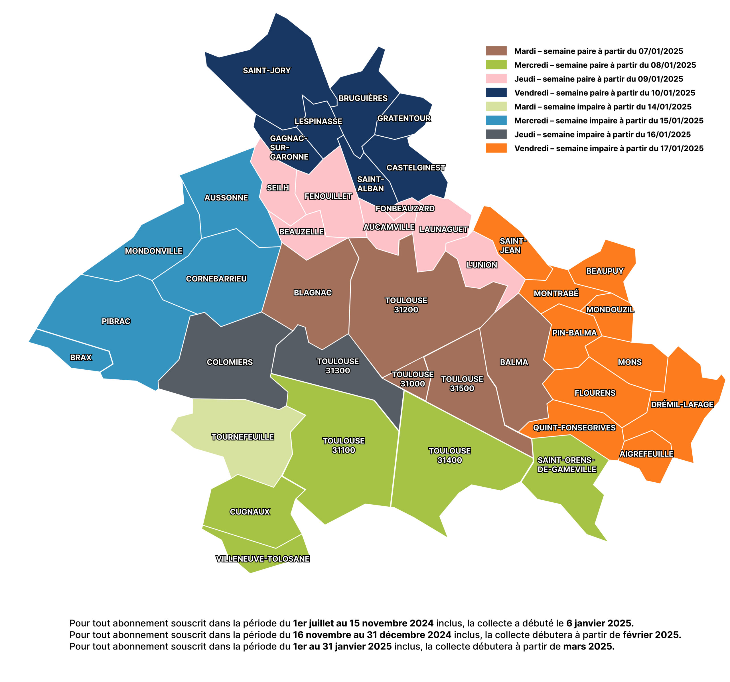 À Fenouillet, la collecte sur abonnement (forfait payant) a débuté le jeudi 9 janvier et se tient un jeudi sur deux (en semaine paire).