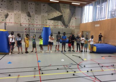 - Le matin, de 10h00 à 12h00, deux tranches d’âges (9 – 10 ans et 11 – 13 ans) participent à des activités sportives sous forme de cycle d’initiation.