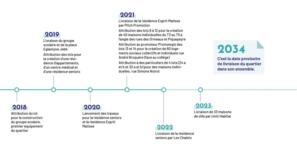 Le projet avance par étape et par construction de lots sur les 29 hectares dédiés au projet. Cet espace est une Zone d’Aménagement Concertée (ZAC) aménagée par Oppidea et financée par Toulouse Métropole. Retrouvez le plan du quartier ci-dessous.