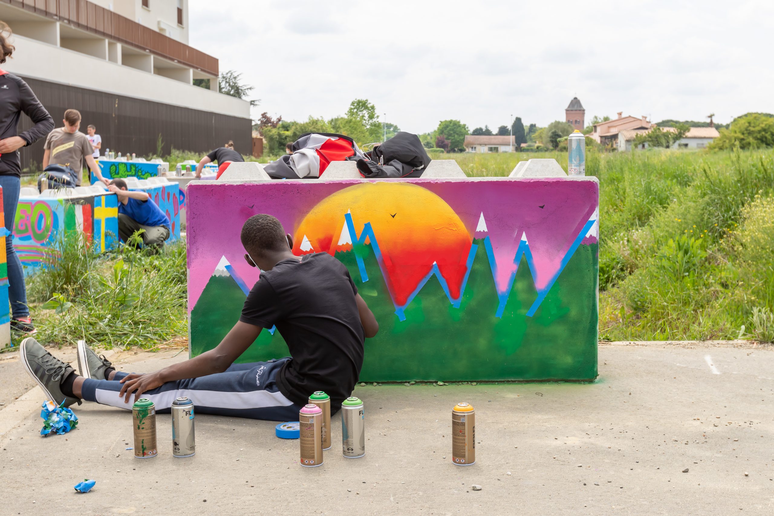 Ils ont ainsi pu découvrir la culture du street-art, dessiner des motifs, apprendre à utiliser les bombes de peinture et ensuite graffer une vingtaine de blocs béton de chantier qui habillent maintenant le quartier.