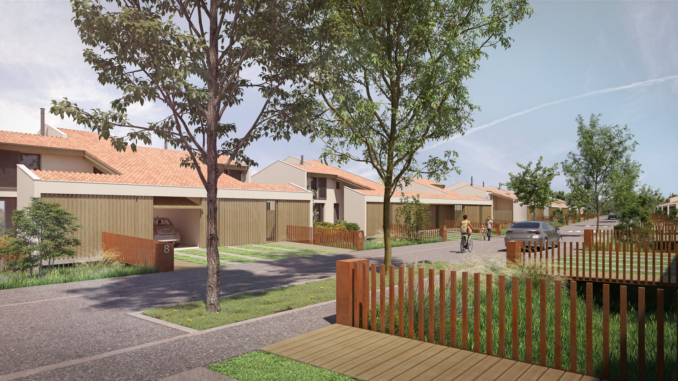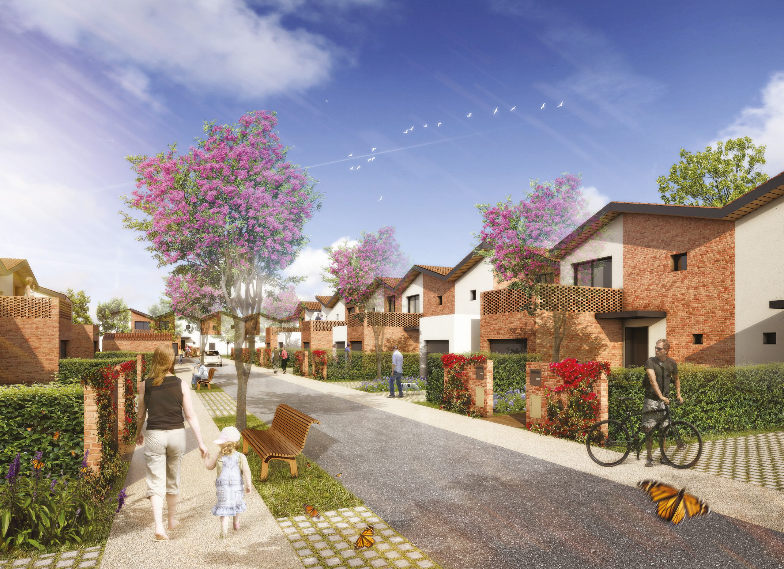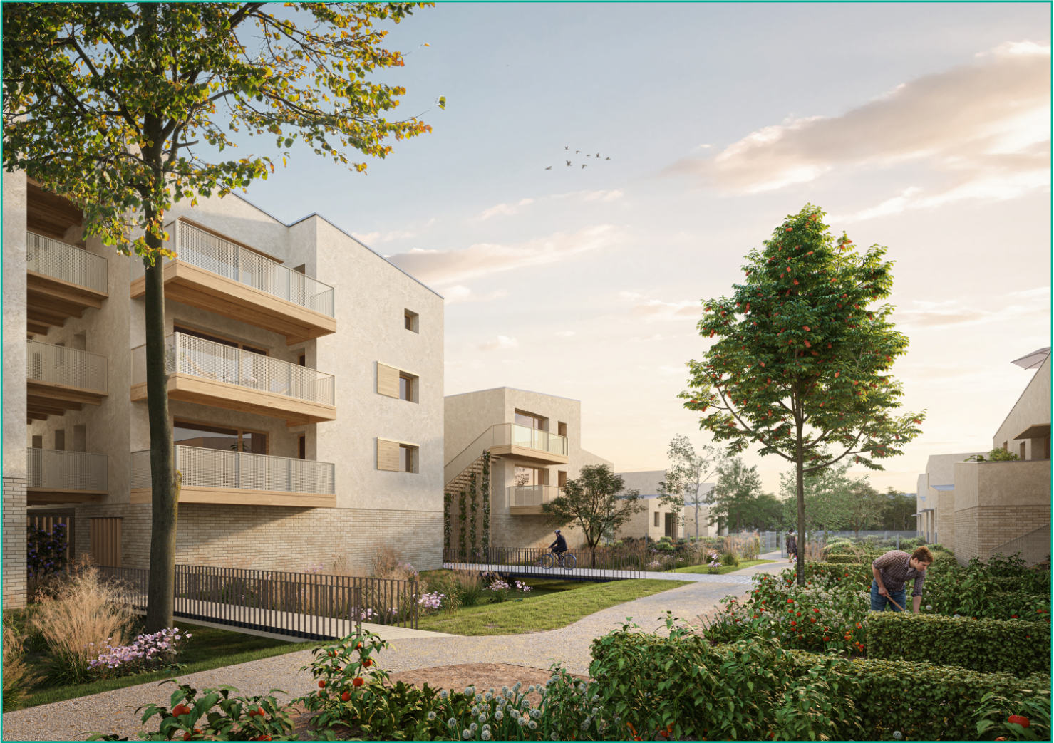 Cette résidence pensée par le cabinet d’architexte Atelier Cube proposera 38 maisons T3, T4 et T5 et 8 appartements (logements éligibles au Bail Réel Solidaire), intégrés dans ce nouvel écoquartier contemporain. Pour favoriser la biodiversité et conserver un rapport privilégié à l’extérieur, chaque maison bénéficiera d’un patio, d’une grande terrasse et d’un jardin paysager avec coin potager.