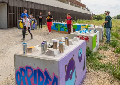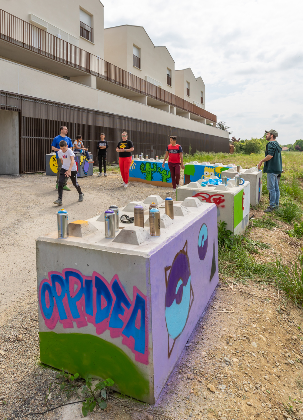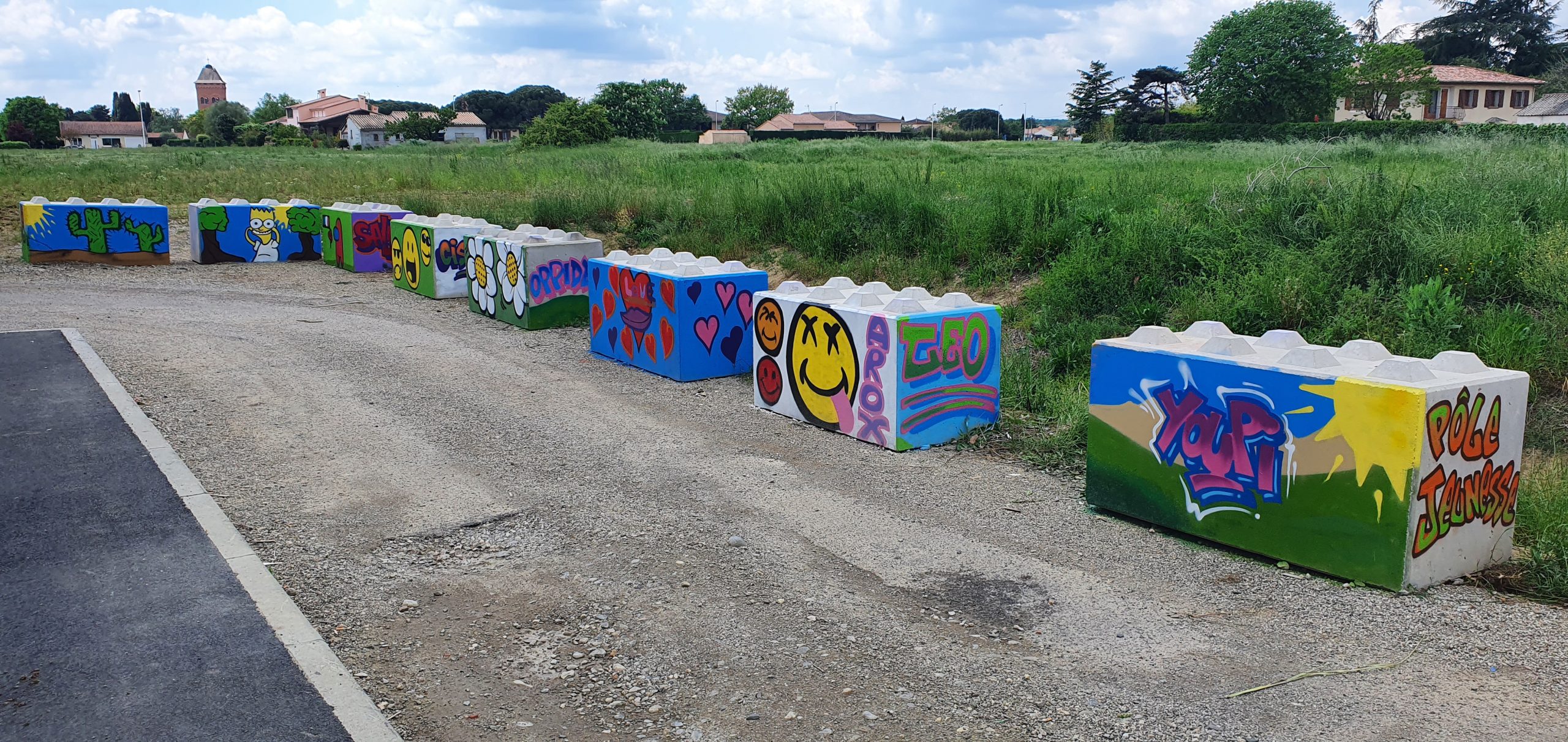 Les jeunes du pôle Jeunesse ont quant à eux pris part à un projet artistique porté par Oppidea et le collectif d’artistes CISART. Ils ont graffé plusieurs blocs de béton situés dans le quartier des chemins de Piquepeyre, accompagnés des artistes du collectif.