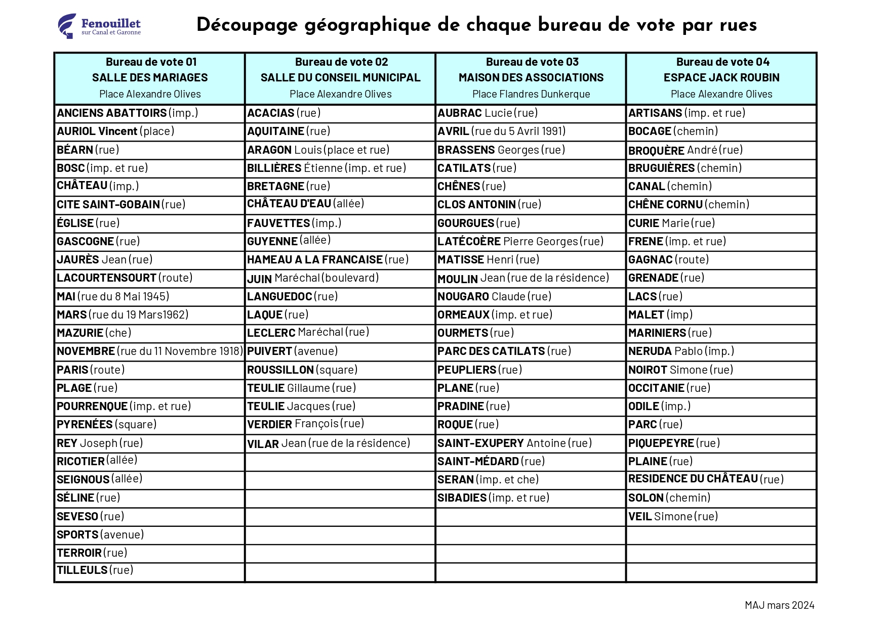 Pour télécharger le tableau des bureaux de vote par rues, cliquez ici.